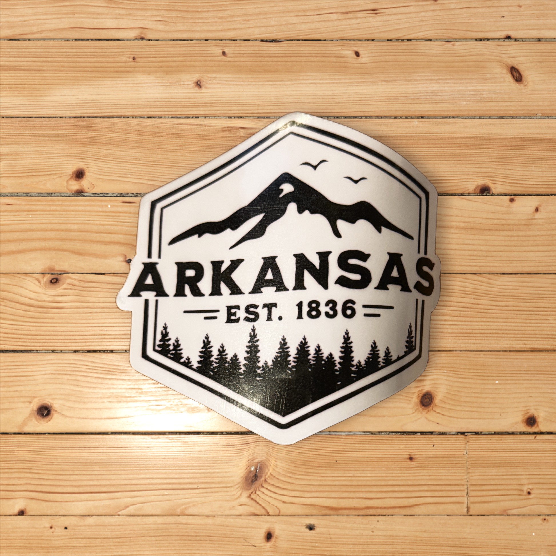 Show off your Arkansas pride with this 3" sticker! Featuring iconic mountain icons and the established year of 1836, this is a great way to show off your love for your state. Perfect for any car, laptop, or even your water bottle. Put it on and let the world know that you're an Arkansan!