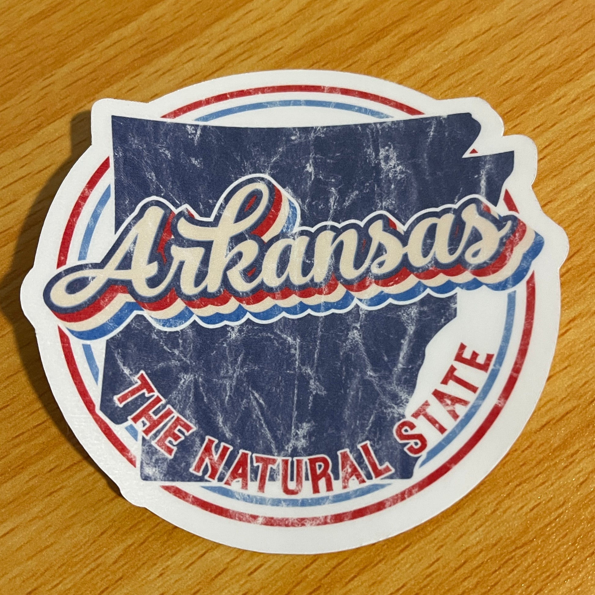 Show off your state pride with this retro Arkansas sticker! With a classic design, it's perfect for your laptop, car, or journal! Get your hands on this one-of-a-kind piece and show the world you're a Razorback! ;)